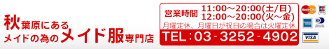 メイド服はもちろんメイドさんに欠かせないエプロンやニーハイソックスなど小物も充実!!ドール用メイド服も販売してます♪♪