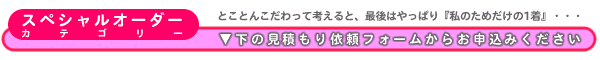 スペシャルオーダー(特注品)のページへようこそ! オーダー頂いた商品は、あなたのためだけにデザイナーがデザイン画を製作し、パタンナーが一からパターンを引き、立体裁断をへて、縫い子が心を込めて完成させる、手間をかけた究極の完全オリジナル特注品にて、お届けさせていただきます。 |
